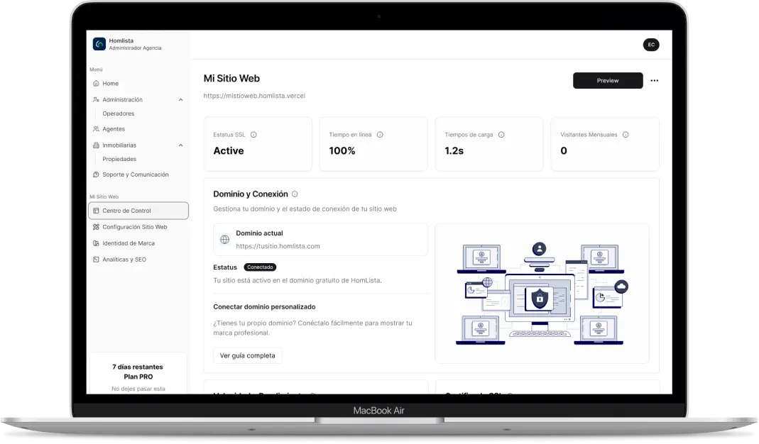 Crea tu sitio web inmobiliario profesional en minutos, sin tarjeta y sin compromiso.