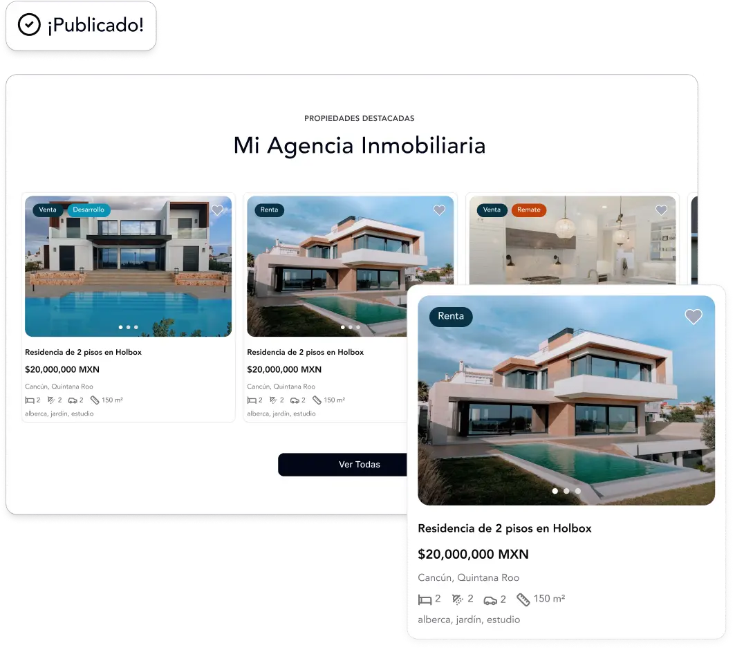 Crea un sitio web profesional para tu marca inmobiliaria, conectado automáticamente a tu inventario en HomLista.